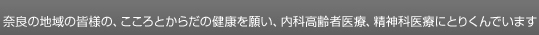 近鉄菖蒲池駅南口徒歩5分。職員10名の小さい診療所ですが、内科・精神科・訪問診療を